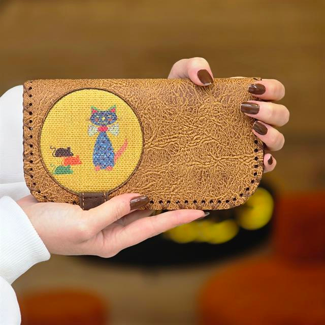 Bu özel tasarımlı cüzdan, kedi severlerin ve bohem tarzını benimseyenlerin favorisi olmaya aday! Kedi ve fare figürleriyle bezenmiş bu eğlenceli ve masalsı tasarım, vintage detaylarla zenginleşiyor. Hem şıklık hem de işlevselliği bir arada sunan bu cüzdan, her an yanınızda taşımak isteyeceğiniz bir aksesuar olacak.