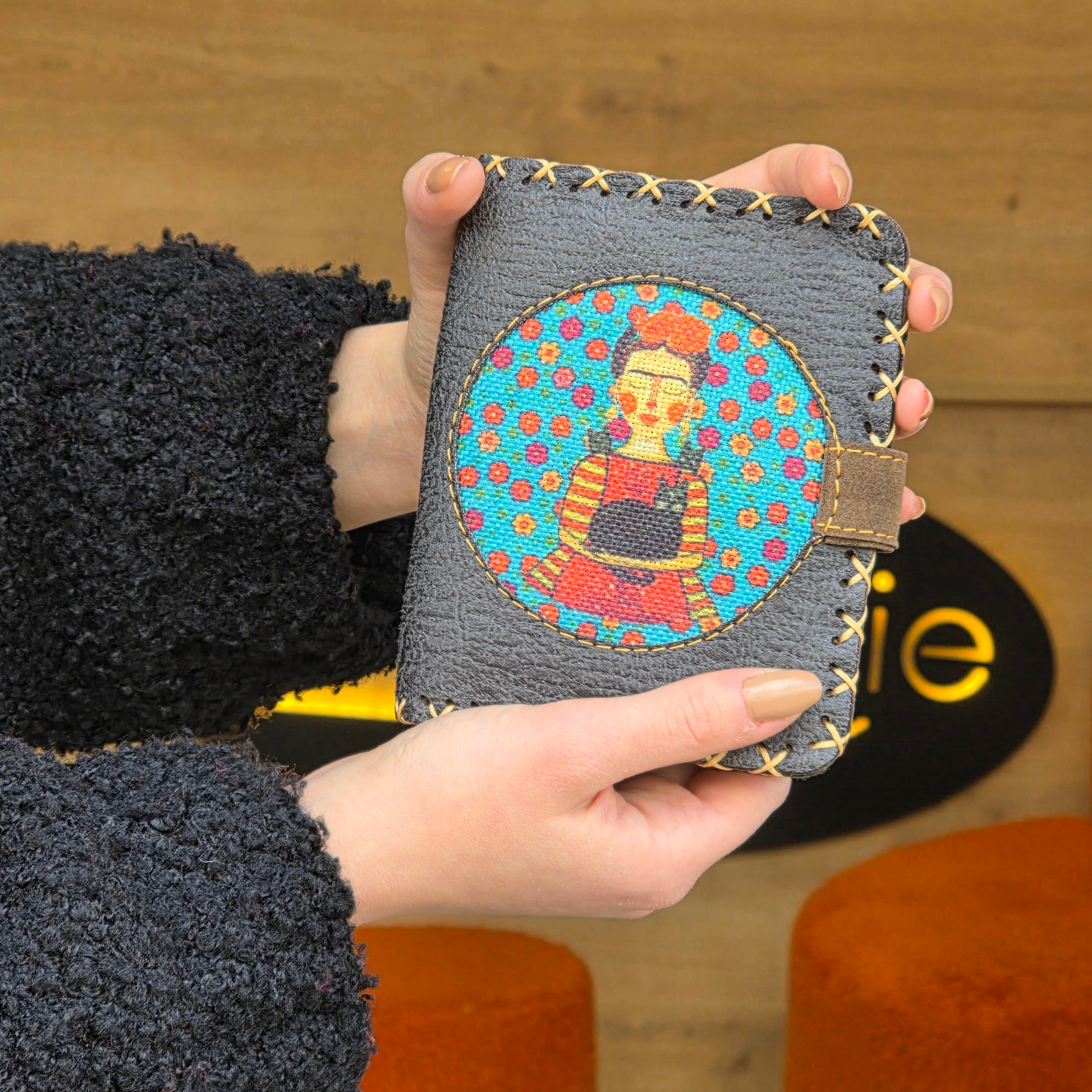 Mavi Frida figürüyle tasarlanmış bu cüzdan, cesur ve tutkulu bir hayatın sembolü! Etnik bohem retro tarzıyla, günlük yaşamınıza sanatsal bir dokunuş katarken, özgünlüğünüzü de vurguluyor.