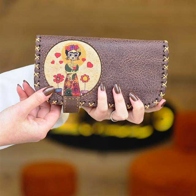 Mexsican Frida Figürlü Büyük Cüzdan – Etnik, Bohem ve Retro Şıklık!
