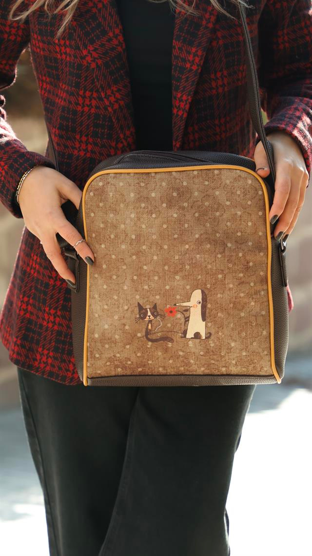 Tilki Figürlü Büyük Postacı Kol Çantası Etnik Bohem Style - Kahverengi